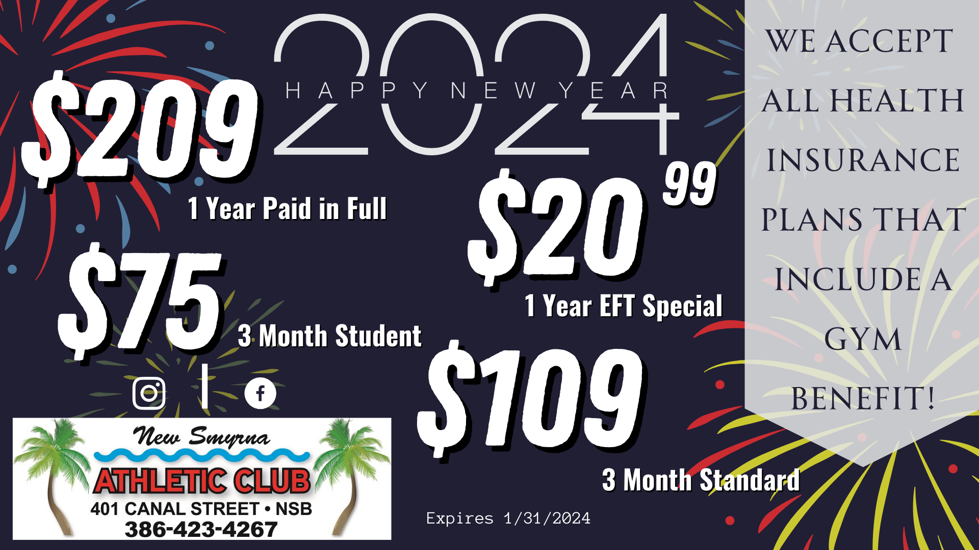 Keep in mind we have a full staff of Massage Therapists and Certified Personal Trainers at New Smyrna Athletic Club so if you’re looking to take care of those sore muscles or jump start your workouts this year, you can speak to anyone at the front desk and they’ll point you in the right direction.